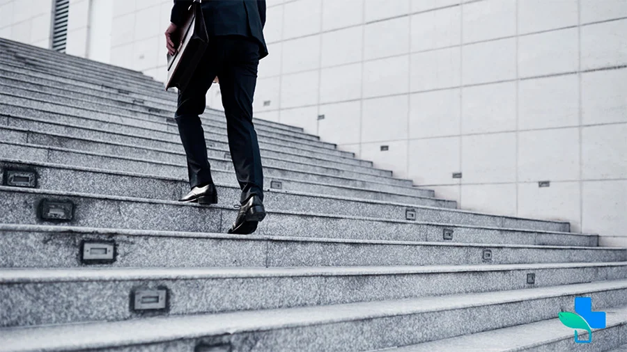 Мужчина бежит по лестнице